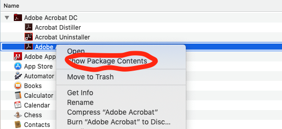 Right click on the Adobe Acrobat application (ctrl + click)
